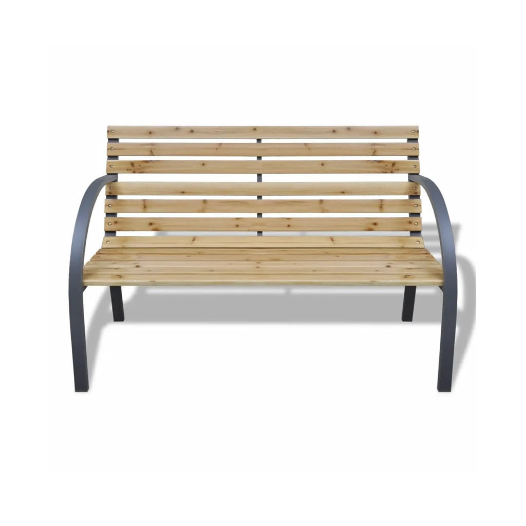 Aus robustem Holz gefertigt, bieten die Sitz- und Rückenlehn-Holzlatten einen guten Halt und optimalen Sitzkomfort. Auf den zwei geschwungene Armlehnen aus Metall finden Sie den perfekten Platz zum Ausruhen der müden Arme. Auf dieser schönen Bank werden Sie jeden Moment voll geniessen!
